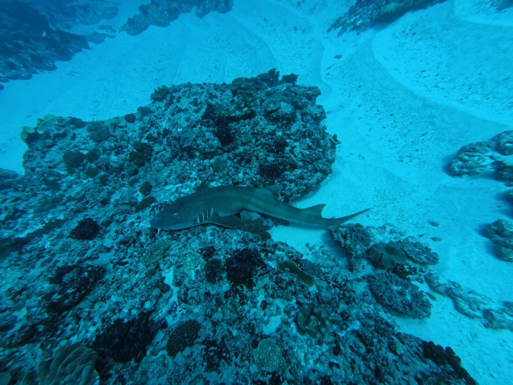 マンタはやはりヌサペニダを代表する主役級の存在。目の前を優雅に泳ぐ姿は何度見ても感動的です。この日はさらに、砂地エリアでイヌザメにも遭遇。思いがけない大物との出会いに、水中は大盛り上がりでした。